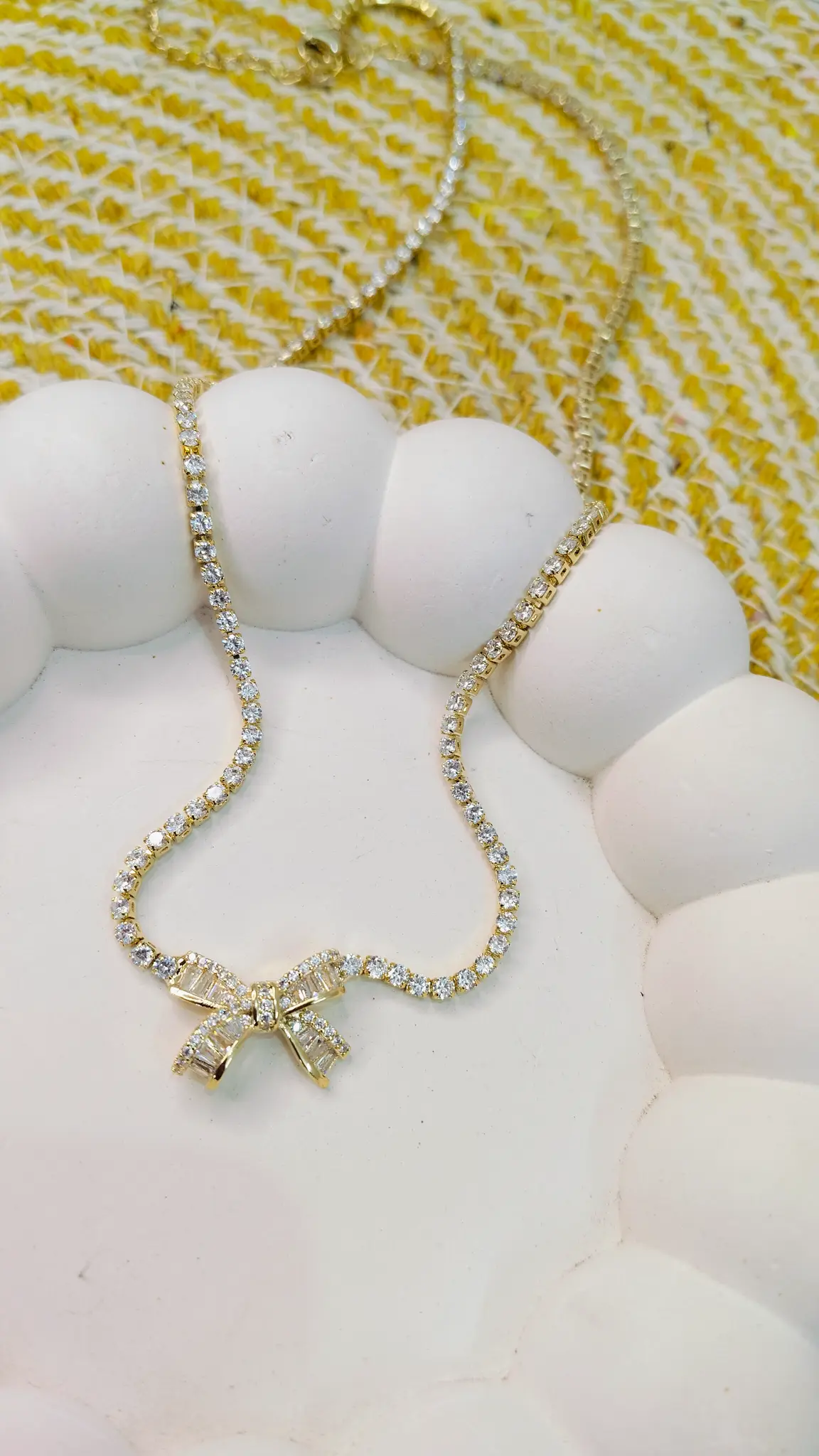 Delicate yet dazzling, this celestia bow anti tarnish neckchain is crafted to add effortless elegance to every outfit. The graceful bow symbolizes femininity, charm, and timeless beauty—perfect for women who love subtle luxury with a statement finish.