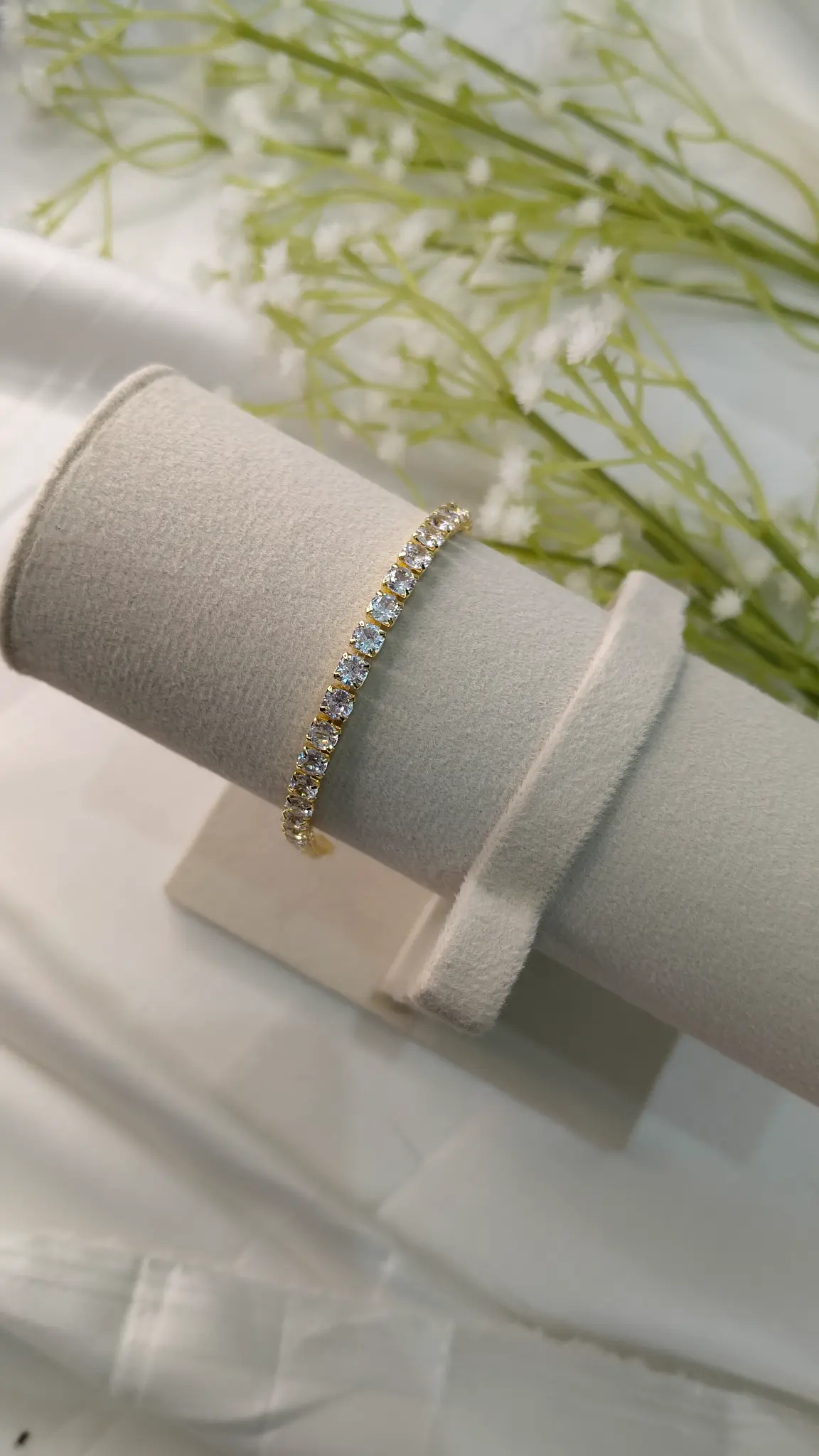 Add effortless sparkle to your everyday look with this elegant anti Tarnish bracelet. Designed with a sleek row of shimmering stones set in a rich gold finish, this refined anti Tarnish chain bracelet blends timeless beauty with long-lasting durability.